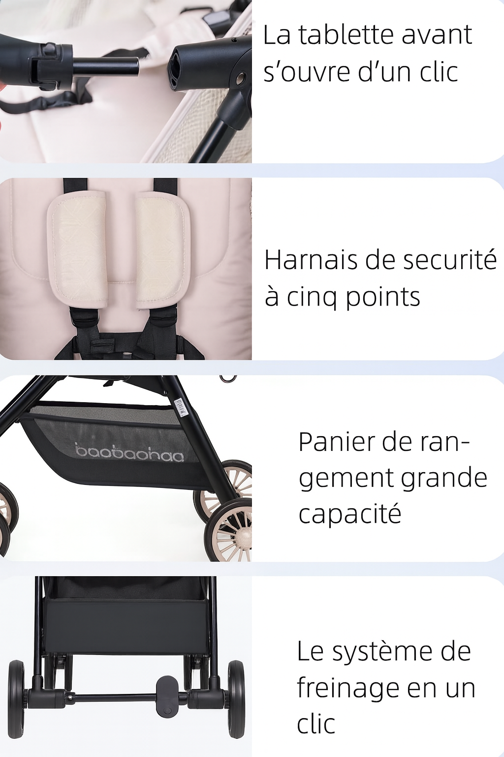 Conçue pour les sorties du quotidien, elle combine légèreté, maniabilité et sécurité. Son assise respirante garde bébé au frais, et son dossier permet aussi bien la position assise que semi-allongée. Facile à plier d’une seule main, elle se transporte partout sans effort, que ce soit dans le coffre ou dans les transports. Son châssis solide supporte plus de 20 kg tout en restant ultra maniable. Une poussette pensée pour les parents qui veulent un modèle simple, fiable et confortable pour leur bébé.